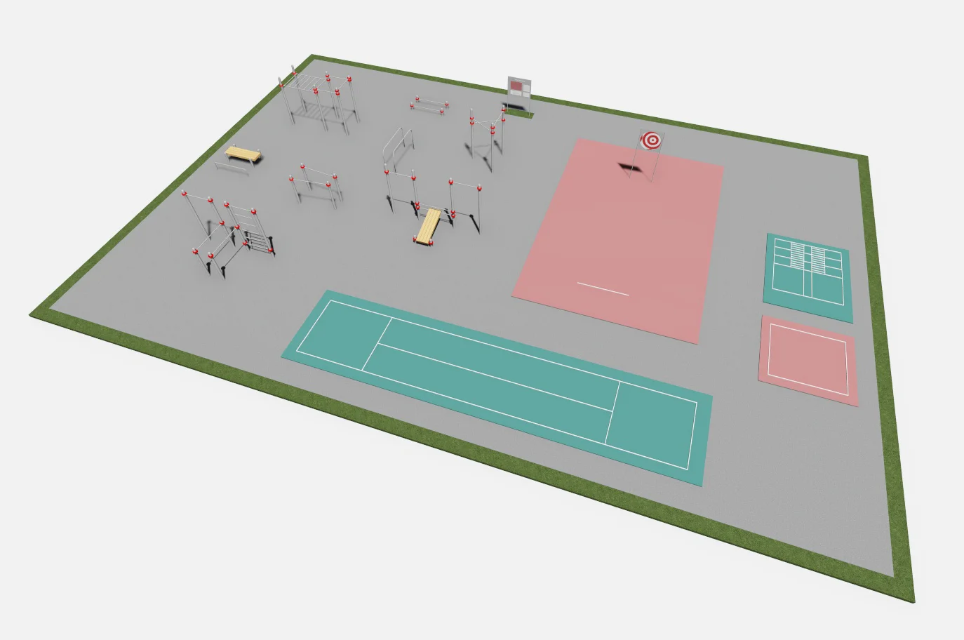 Наши спортивные комплексы разработаны для обеспечения гармоничного развития физических качеств и поддержания здоровья людей всех возрастов. Они станут отличным решением для обустройства зон активного отдыха на открытом воздухе, в парках, на территории образовательных учреждений и в жилых комплексах.