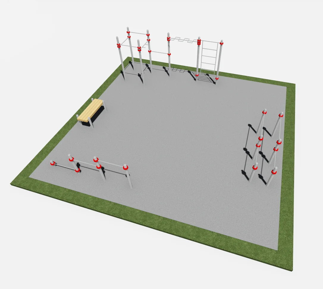 Разработанная нашей компанией спортивная площадка предназначена для улучшения физической подготовленности и общего благополучия жителей городских и сельских территорий. Она предлагает широкий спектр возможностей для тренировок на открытом воздухе, стимулируя интерес к регулярным физическим упражнениям среди людей разных возрастных групп. Благодаря этому оборудованию, каждый желающий сможет укрепить свое здоровье, развить мышечную массу и улучшить координацию.