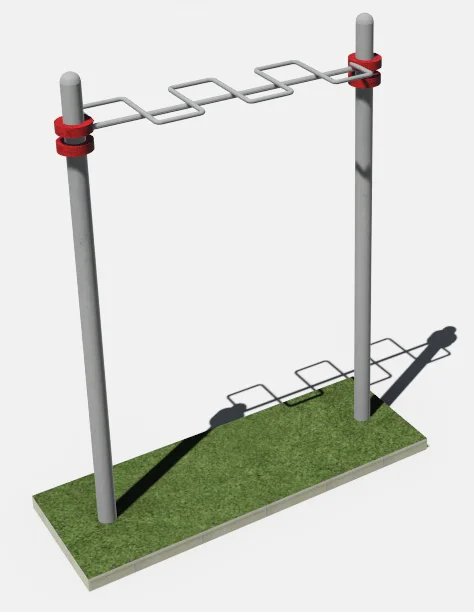 Рукоход-змеевик длиной 1800 мм, устанавливаемый на высоте 2300 мм с интервалом между перекладинами в 300 мм, обеспечивает разнообразие упражнений для верхней части тела.