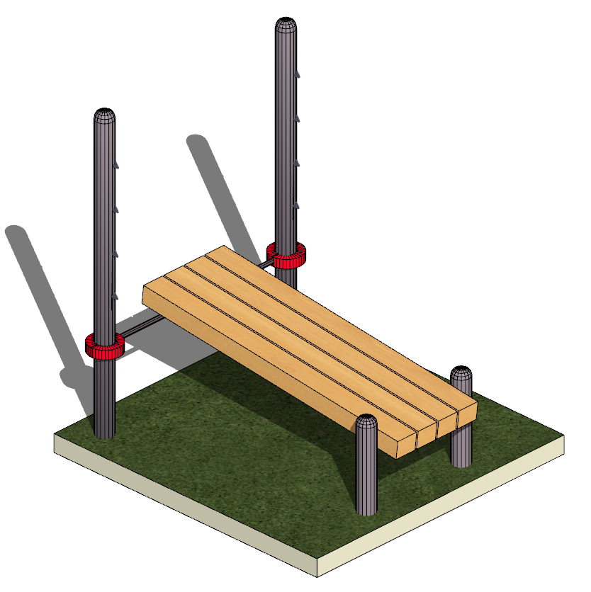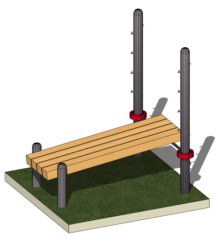 Скамья изготовлена из прочного деревянного бруса, гарантирующего комфорт и безопасность во время тренировок. Все элементы конструкции соединяются между собой при помощи хомутов для обеспечения простоты сборки и надежности в использовании.