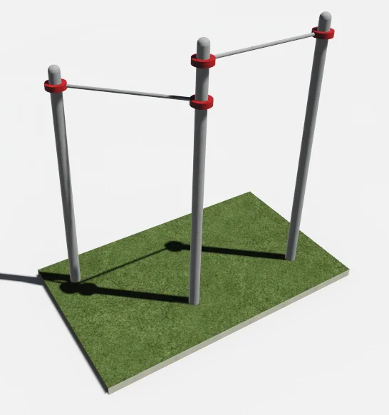 Турник двойной «Г-образный» предназначен для подтягиваний. Подтягивание помогает значительно развить мышцы спины. Кроме того, подтягиваясь человек развивает и множество других мышц, косвенно прорабатывая всю верхнюю половину тела. Высоту перекладин можно регулировать.