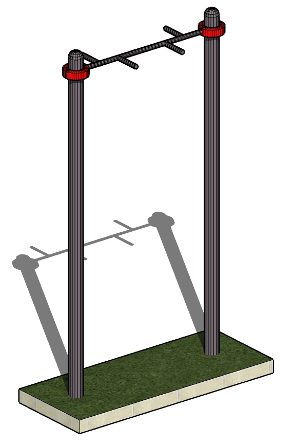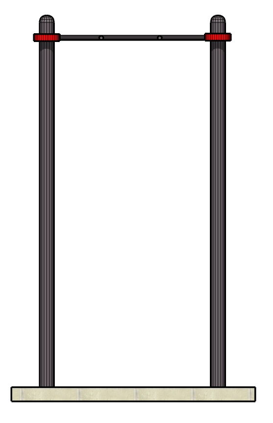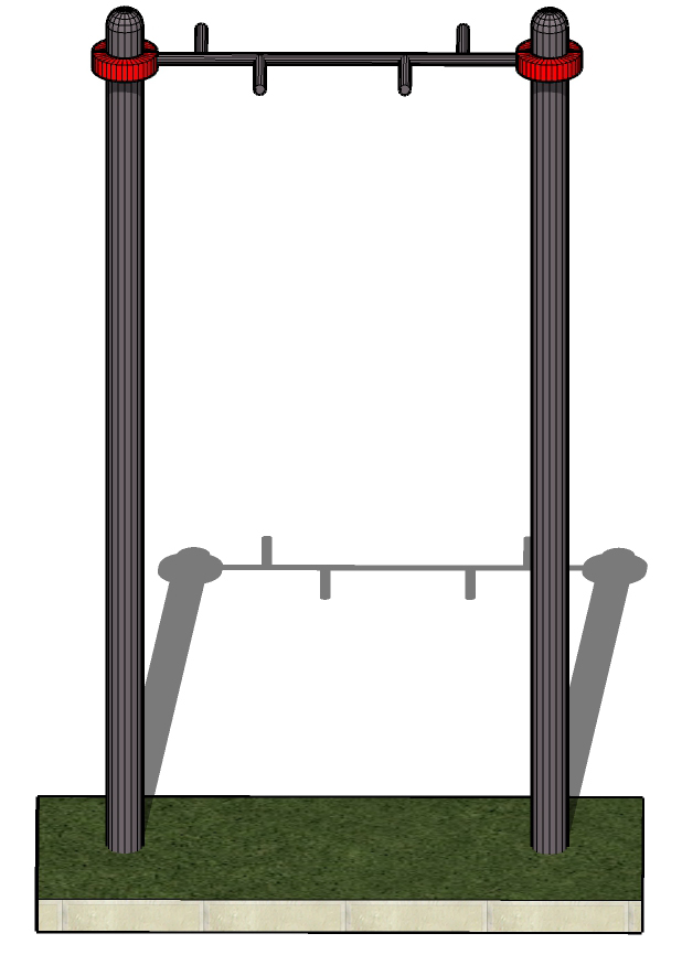 Горизонтальную перекладину длиной 1400 мм, монтируемую на высоте 2500 мм от уровня земли для разнообразия упражнений на верхнюю часть тела.
